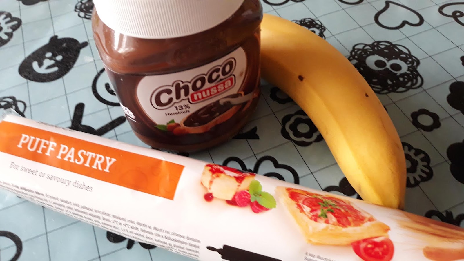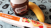 Elkészítése nem is lehetne egyszerűbb. Bekapcsoljuk a sütőt 210 fokra, hogy melegedjen. Addig a leveles tésztát kicsomagoljuk, hosszában félbevágjuk, és háromszögeket vágunk belőle úgy, hogy 16 db legyen a végén. Minden háromszögre rakunk egy kiskanálnyi mogyorókrémet (én Lidl-ben vásárolt mogyorókrémet használok, ugyanannyi a mogyoró tartalma mint a Nutellának, csak olcsóbb), és erre rakunk egy kis darab banánt. Feltekerjük kiflivé, sütőpapíros tepsire fektetjük őket, és egy tojással lekenjük a tetejüket.