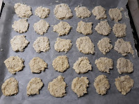 Előveszünk egy tepsit, teszünk bele sütőpapírt. Én kiskanállal adagoltam bele a tésztát, és a kanál tetejével lelapítottam. Azonban lehet úgy is, hogy habzsákba töltjük a tésztát, és a sütőlemezre egymástól 2-3 cm távolságra, fél diónyi halmokat nyomunk.